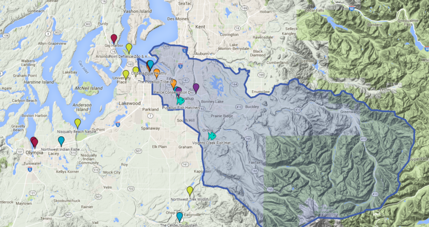 The goal of the Puyallup River Outreach Project is to serve as a reservoir of information related to the Puyallup River Watershed. You can find all sorts of resources such as classroom labs and activities, videos, reports, diagrams, and more. Information is available for all types of audiences, so don’t feel intimidated if you’re not a scientist or a teacher. You can access all of the information bellow or in the top navigation menu.